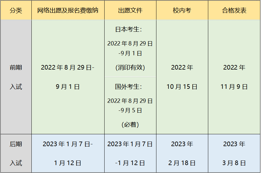 5. 前期入试的考生,无论是在日本居住还是在国外居住都可以出愿。