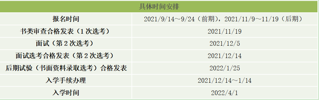 1,同日不可参加复数的学部考试2,关于②后期试验除了设计工学部以外,是可以同时报名前期+后期试验的3,报名时在国内者是不可以报考设计工学部的面试4,均在市谷校区实行(*法学部是网上面试) 立即咨询>>