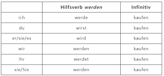 Das Futur I wird mit dem Hilfsverb werden im Präsens + Infinitiv gebildet: