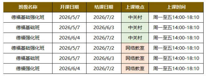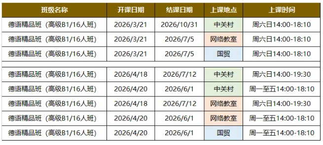 以上就是新东方德语春季班的课表,有没有找到适合你的那一款?机会都是留给提前计划的人,