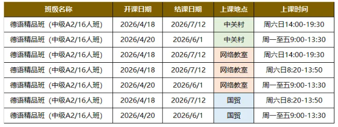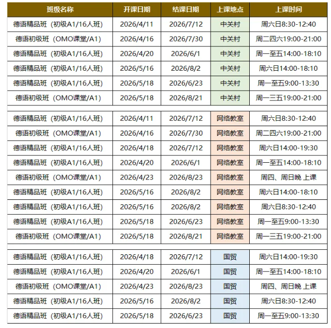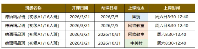 我们为2026年的春季准备好了热腾腾的德语学习“菜单”!从入门到精通,各级别的春季班课表已经全部出炉,就等你来挑一款,为自己充充电。