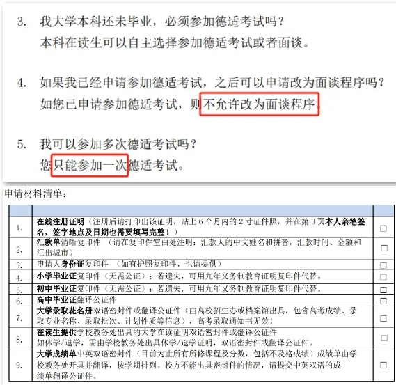 新政明确规定,高校毕业生不符合德适考试报名条件。如果你已毕业或即将毕业,仍需走传统面谈程序。
