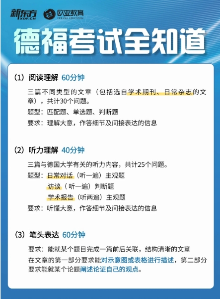如果你在备考过程中需要专业的指导和系统的学习,新东方小语种学习为你提供了全面的德福考试培训课程。我们拥有一支由资深德语教师组成的教学团队,他们具有丰富的教学经验和深厚的学术背景,能够为你提供个性化的备考规划和专业的教学指导。我们的课程设置科学合理,包括基础课程、强化课程、冲刺课程等不同阶段,满足不同水平考生的学习需求。同时,我们还提供线上线下相结合的教学模式,方便你随时随地学习。如果你想了解更多课程详情、开班信息或预约校区试听,我们将竭诚为你服务。