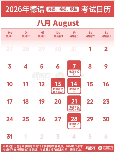 2026年德语考试日历