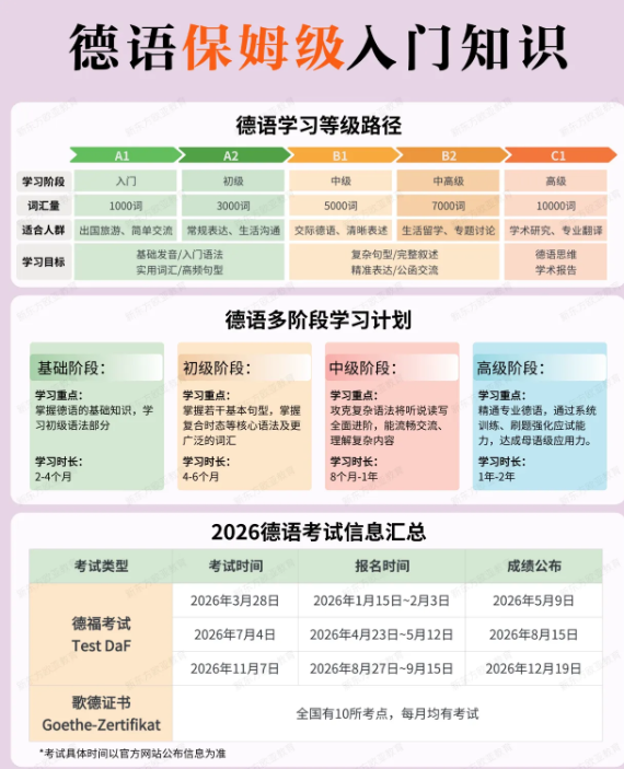 第一板块:德语学习等级路径+2026考试时间表,备考不盲目