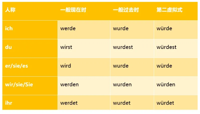 首先明确werden的三种常用变位形式: