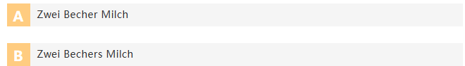 尤其相比英语说 “一瓶水”->a bottle of water,德语中 “量词 + 名词” 直接搭配,不用加 “的”(von):eine Flasche Wasser