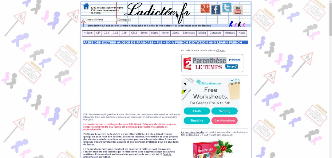 Ladictée.fr 是一个为6-15岁的儿童提供的自由听写网站,无需注册。网站为初中3年级的学生选取了从加缪到司汤达的名篇,帮助他们复习中学毕业考试。