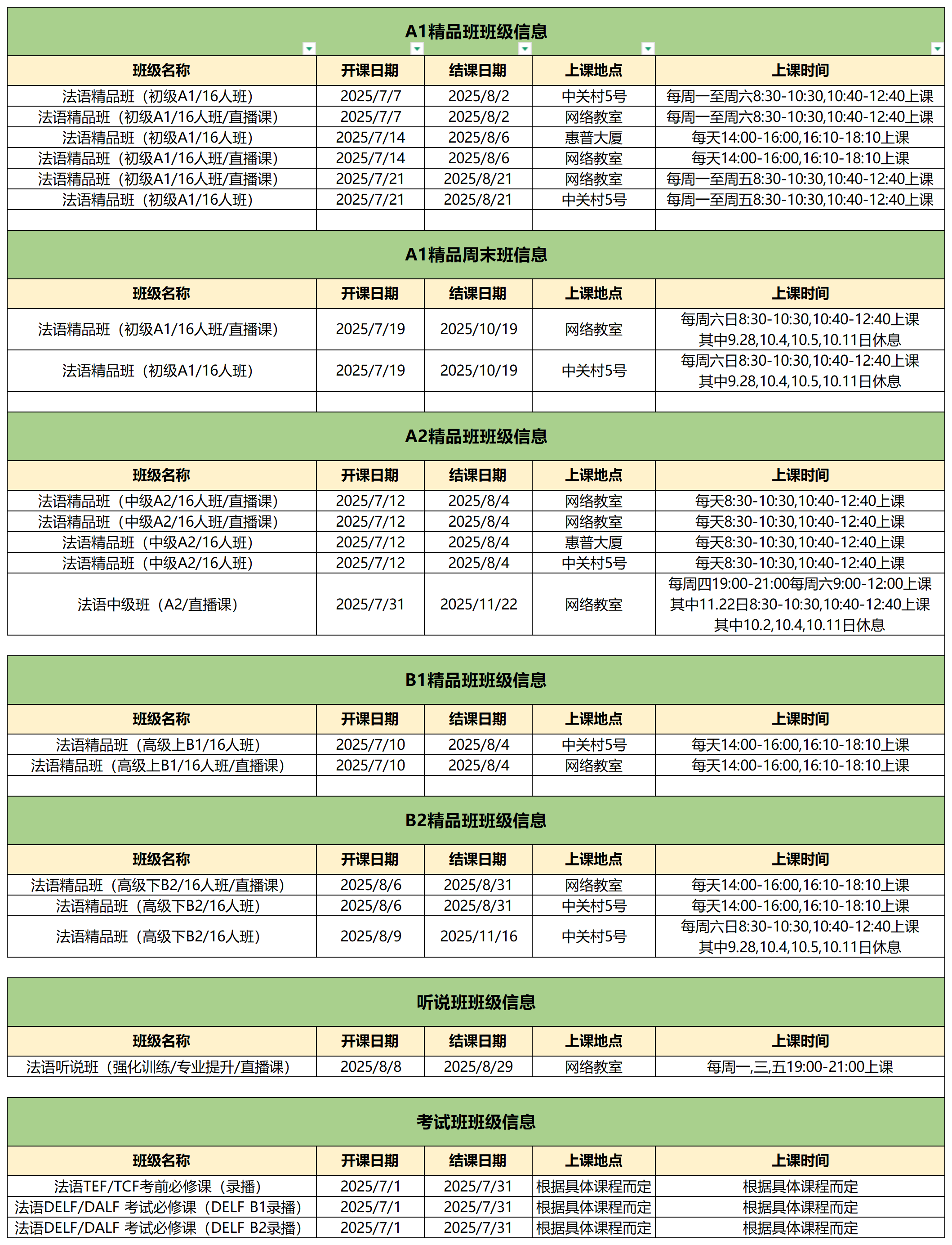 七月法语全级别精品班