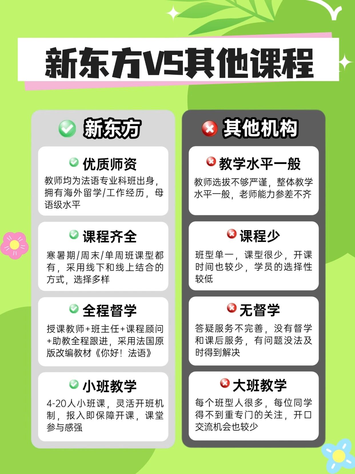 与市面上部分机构师资水平参差不齐不同,新东方的老师不仅通过了严苛的选拔,更注重将法国的校园文化、社会热点融入课堂。在这里,你学到的不仅仅是单词和语法,更是地道的法式思维与文化视野。