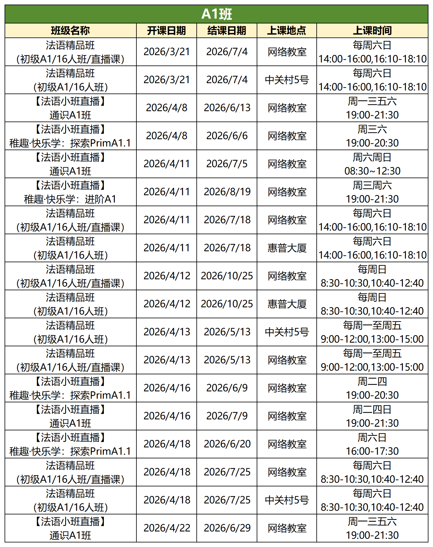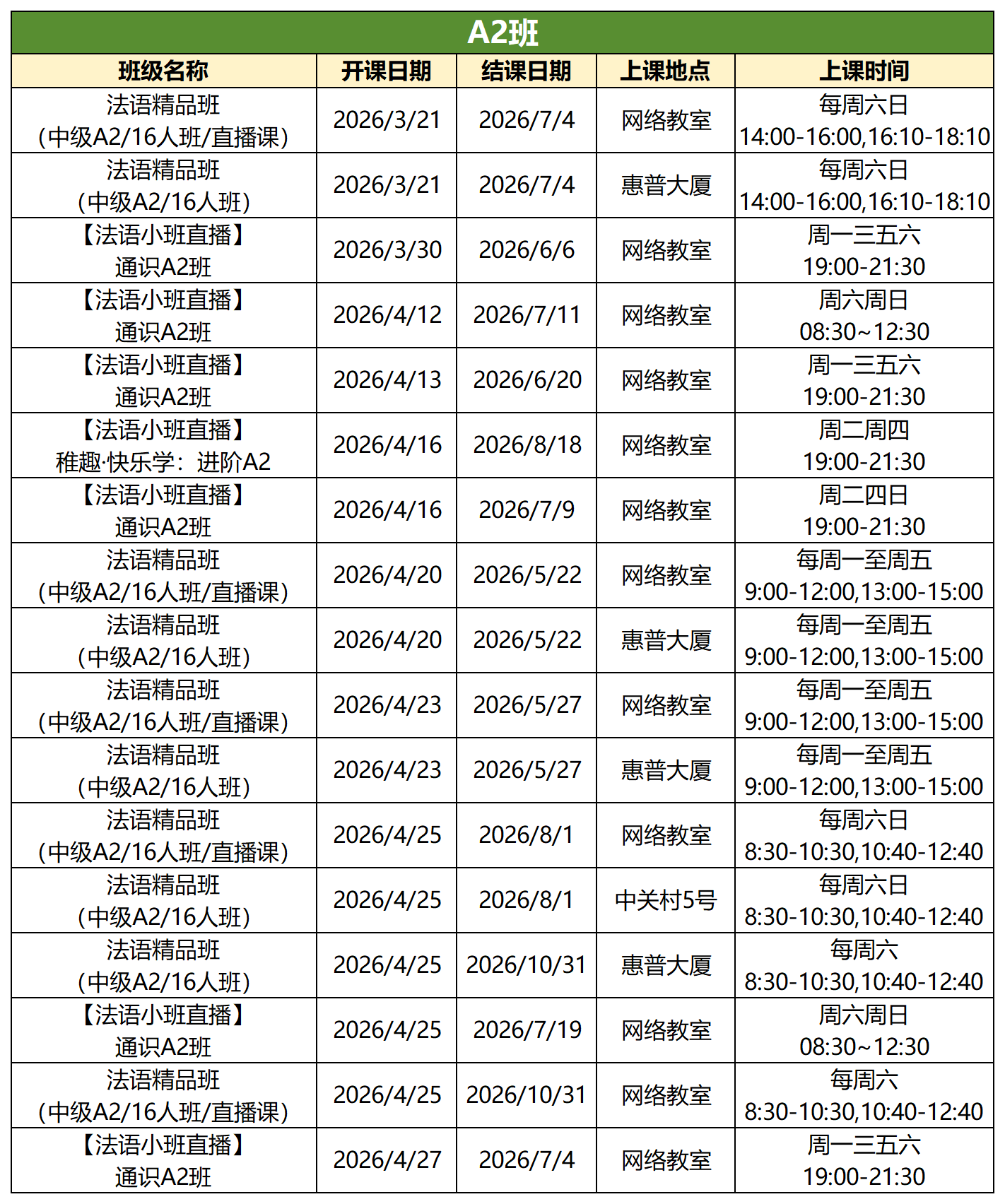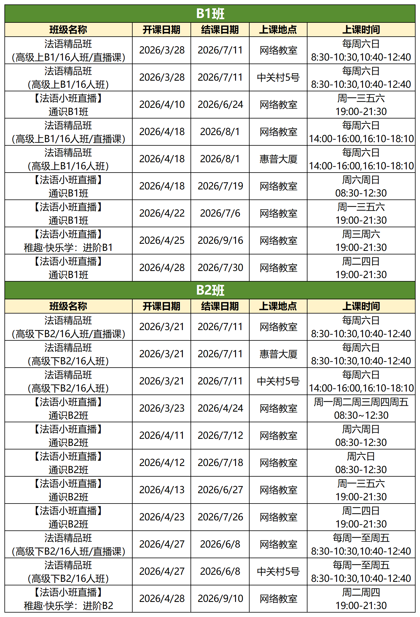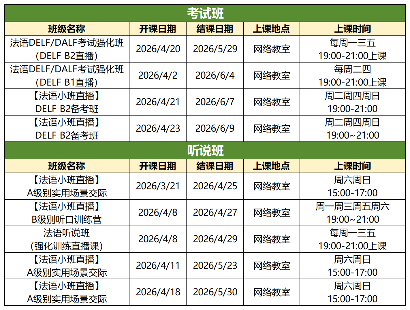 2026年全级别法语课程均已上线,选择最适合自己的班级,和大家一起开启法语学习之旅吧!
