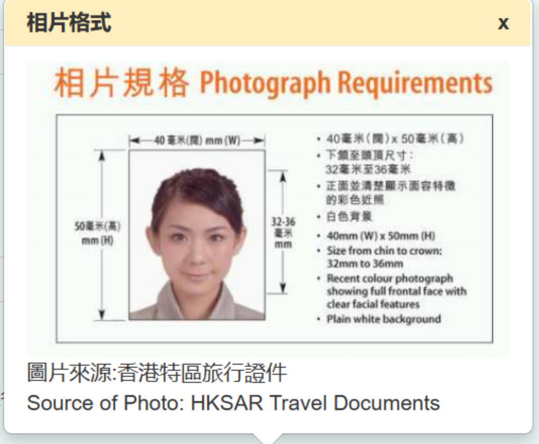 相片应显示你的完整正面, 并能清楚显示你的面容特徵。