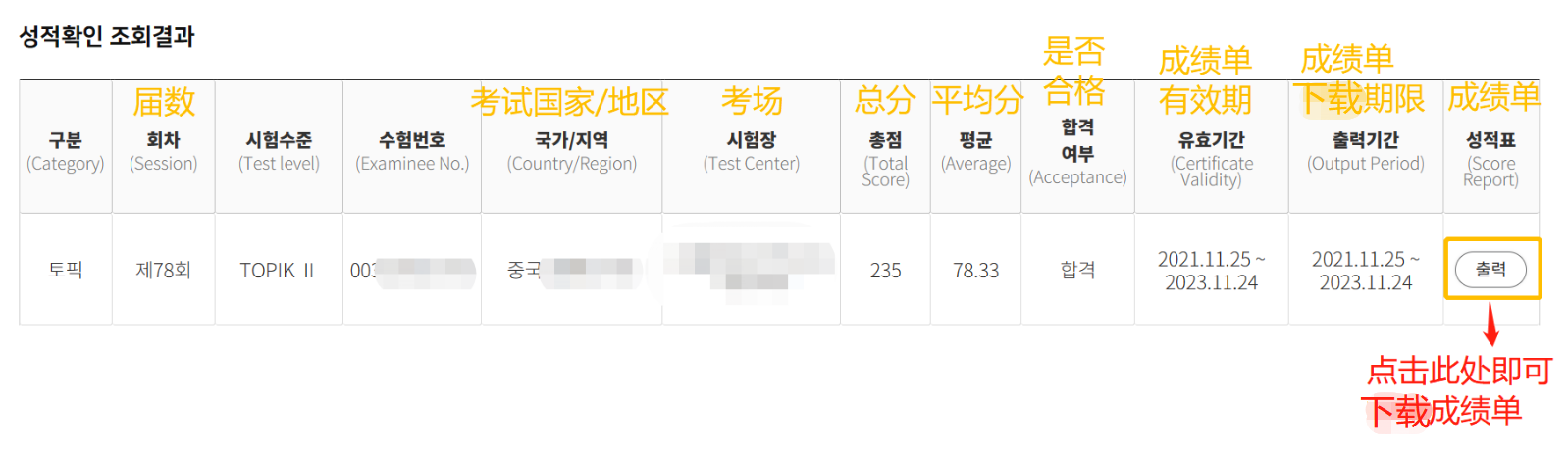 成绩有效期2年,考生可以在韩国官网在线打印成绩。