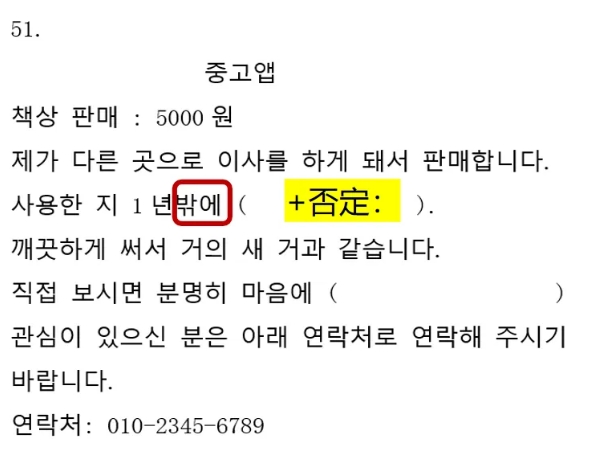 第一个空前面1년밖에 我们可以想到要用双重否定,