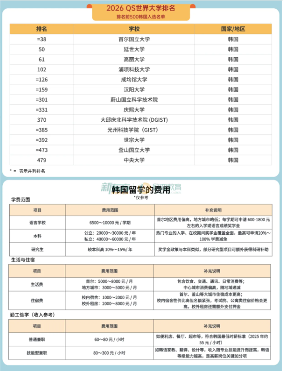 ? P4:2026QS韩国大学排名?|韩国留学花费全解析(学费+生活费)