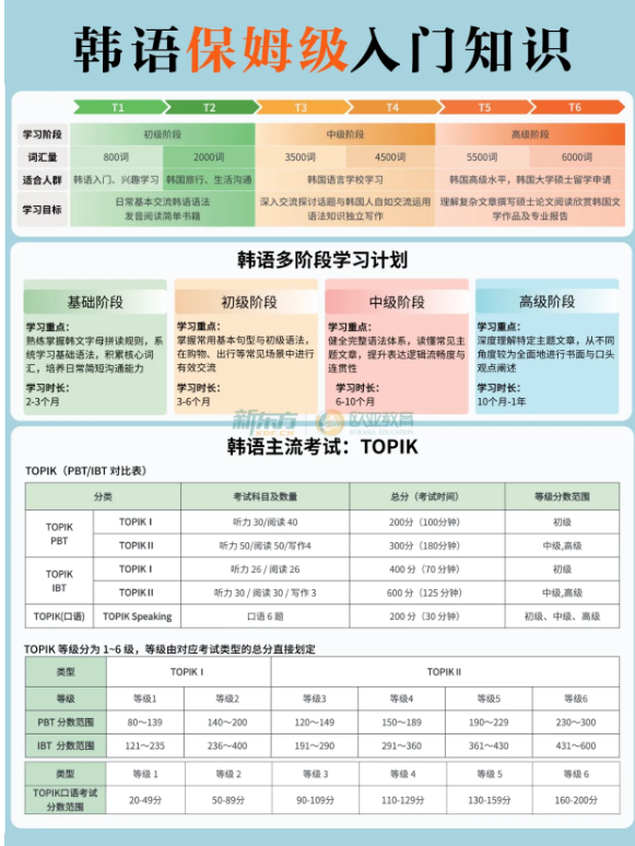 ? P1:韩语等级路径图|T1-T6全阶段规划+TOPIK主流考试详解
