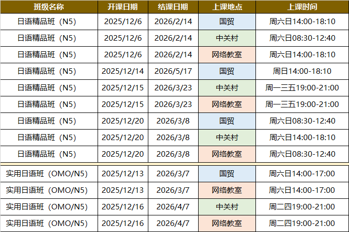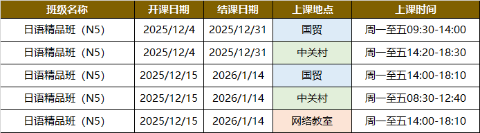 新东方日语12月课表上新啦!快和小亚老师一起来看看吧!