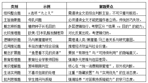 思维要求:强调批判性,不盲信文字表述;需要对全篇建立因果与指代链。