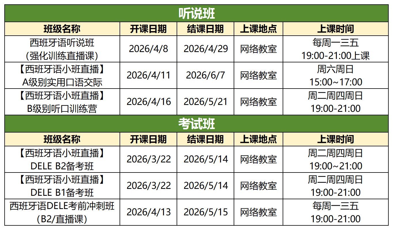 新东方西班牙语3月课程(网课+线下课):
